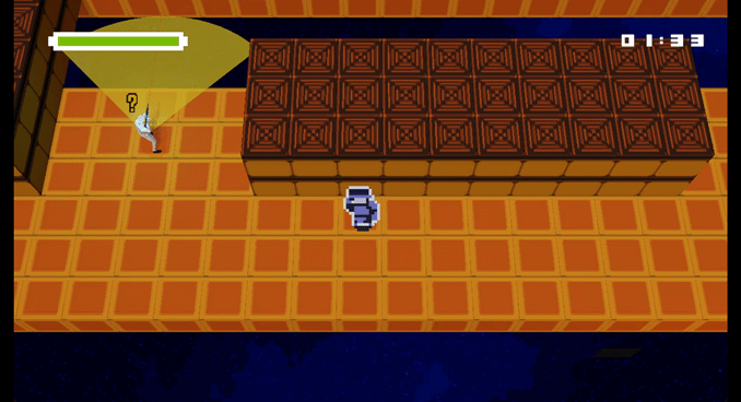 Play a standard top down stealth game, with a twist that you can merge onto walls!